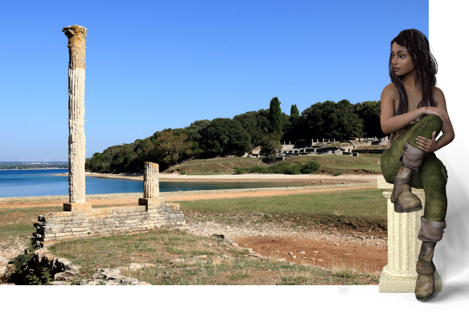 Hier vindt je, prachtig gelegen in de Dobrika bay, de ruïnes van een Romeinse nederzetting. De hele nederzetting is opgebouwd in lagen.Er waren smederijen, werkplaatsen, een basiliek en woonhuizen. Hier werd zelfs wijn en olijfolie gemaakt.
