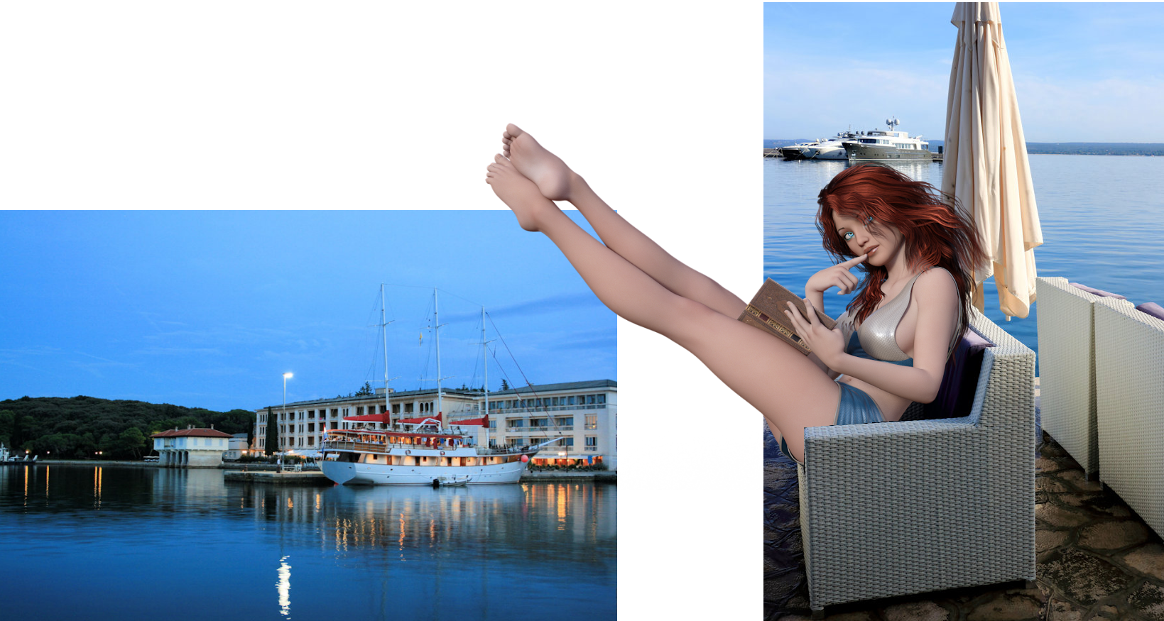 In de haven van Brioni legt de boot aan en heeft u zicht op de hotels en het oude boothuis.
