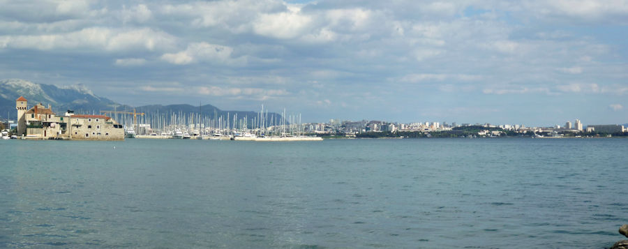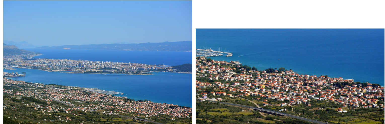 Op de foto zie je Split op de achtergrond, in de uitsnede zie je het laatste dorp voor Split: Kaštel Sućurac