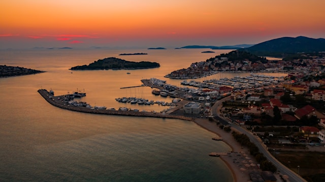 Het ligt gezellig beschut tegen felle zeewinden in een baai voor de twee eilanden Lukovnik en Logorun. Het oude centrum bestaat uit niet veel meer dan een schiereilandje met een heuvel en vlak daarvoor een klein eilandje dat verbonden is met het schiereilandje door een brugje.