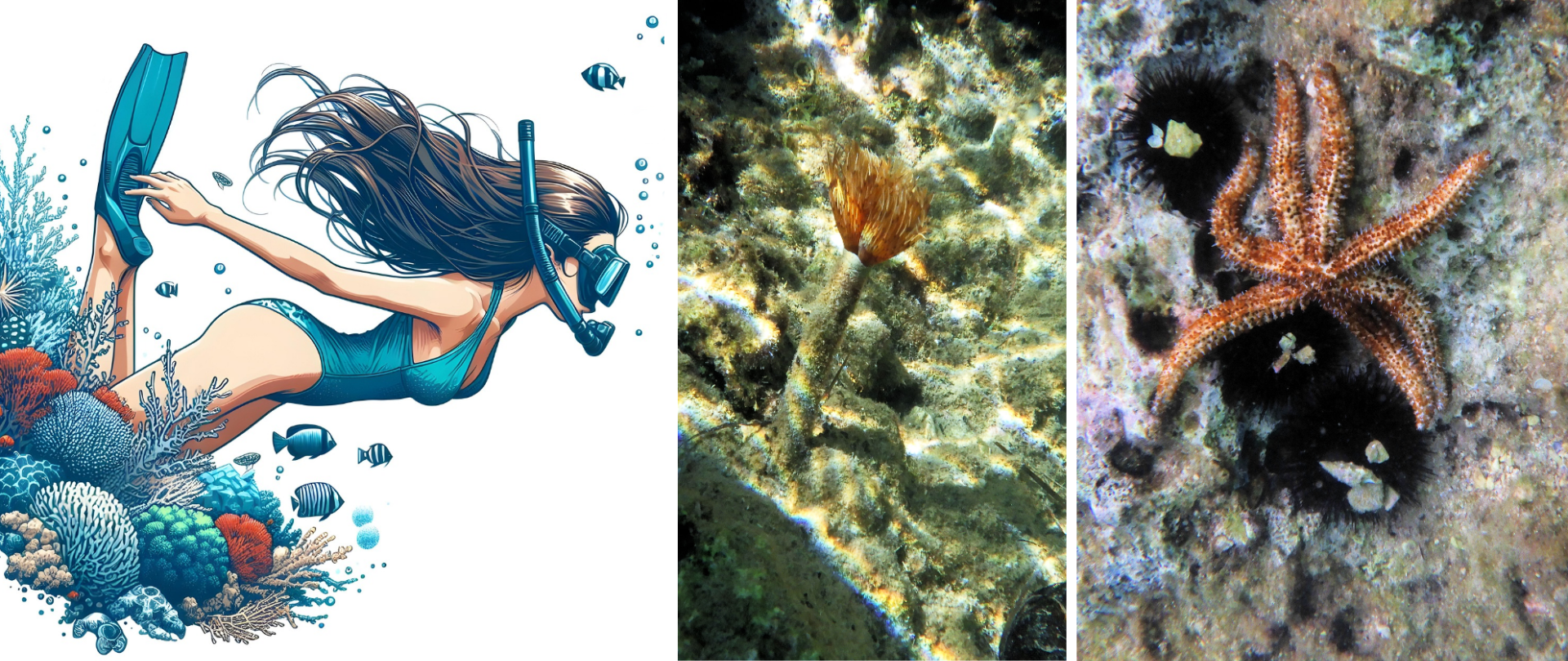 Tussen de rotsen aan de overkant van de treden is het heerlijk snorkelen