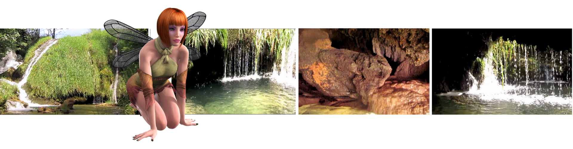 Tussen de bomen vloeit ook heel wat water, en ik ontdek opeens... een grot... of beter gezegd een grotje.