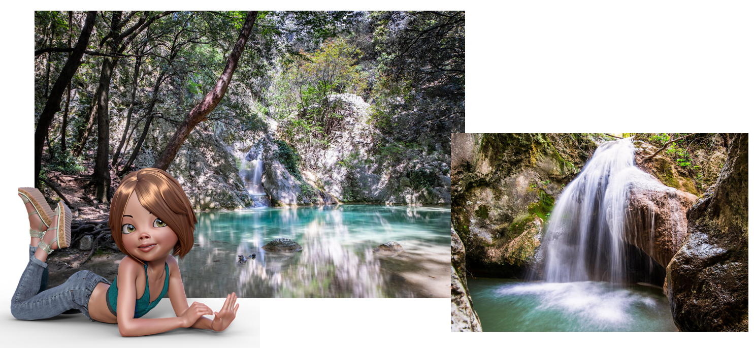 Via de "Divine Trail" passeer je beekjes, met brugjes over, bronnen en zelfs kleine watervallen.