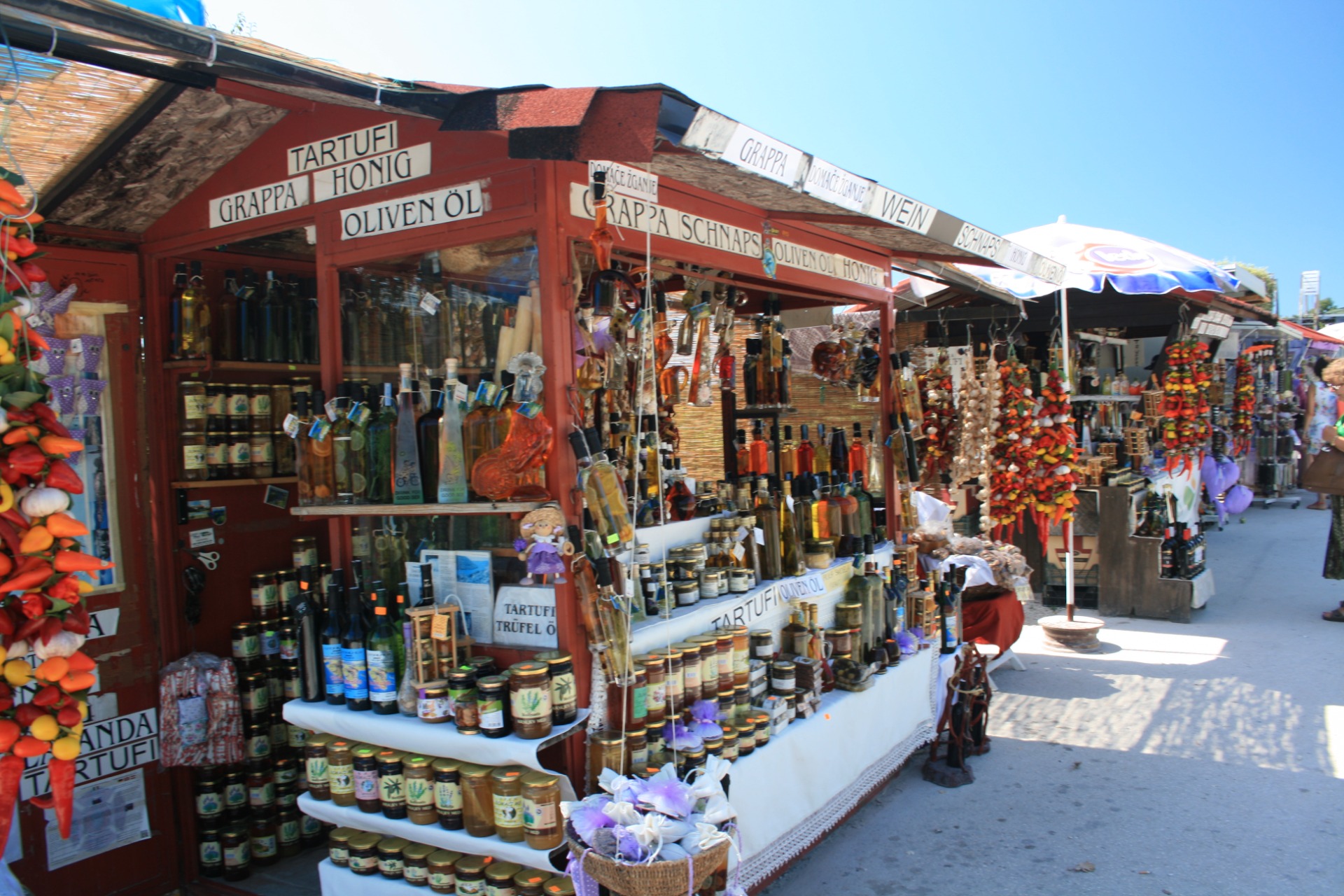 Vooral ook omdat daar kraampjes staat met honing, olie, gedroogde uien en paprika's... maar ook grappa.
