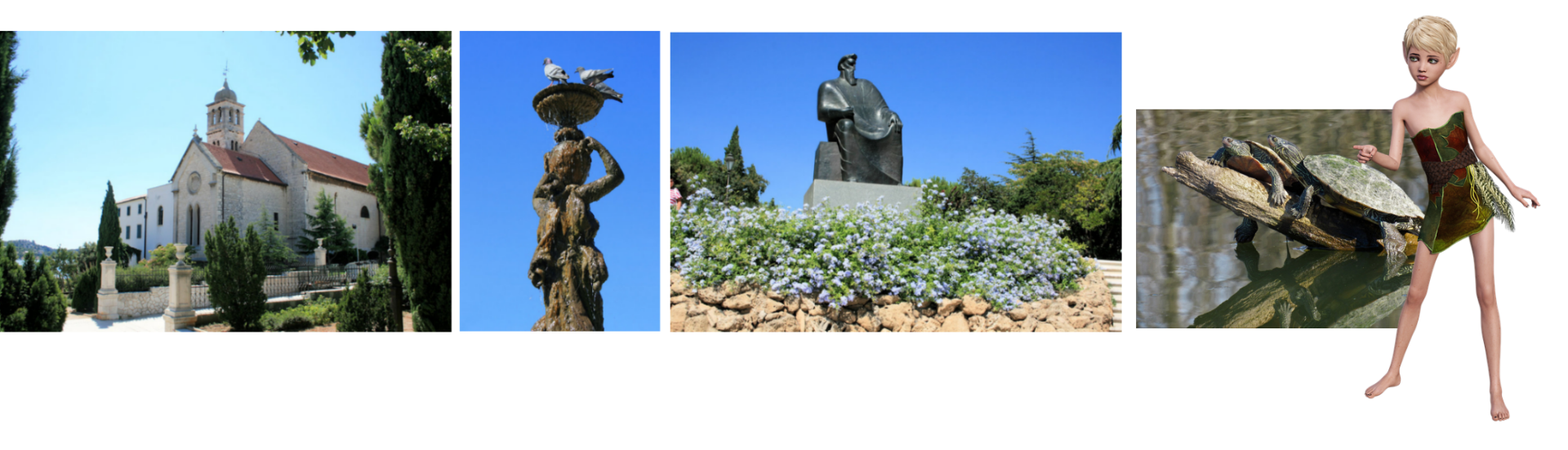 - het Gradski park vlak voor de sv. Frane kerk met het standbeeld van Koning Petar Kresimir tussen de bloemen.