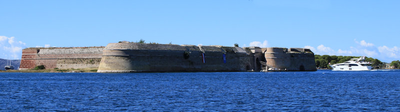 Deze ronduit intimiderende, enorm grote 16 de eeuwse vesting ligt voor de kust op een eilandje in het begin van het Sveti Ante kanaal.