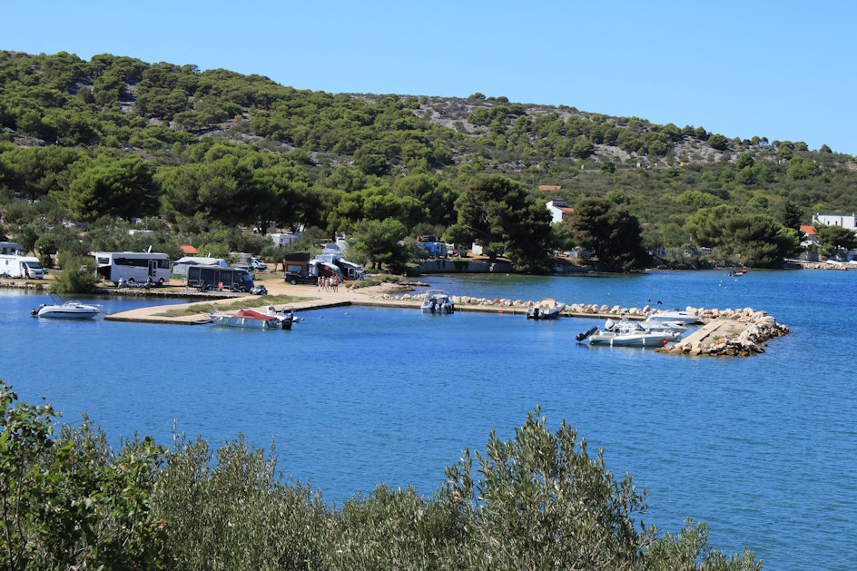 Dit strand is eigenlijk het hoofdstrand van Murter zelf. Je vindt het naast de Konzum supermarkt, links van de stad.