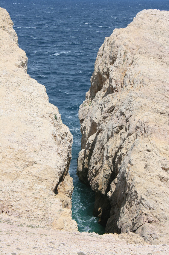 En dan... opeens sta je boven en heb je het mooiste uizicht van het hele eiland. Daar in de diepte liggen ze te blinken. Vela en Mala Luka, twee prachtige hemelsblauwe baaien in een wit en dor rotslandschap. Op de achtergrond zie je zelfs het Velebit gebergte op het vasteland.